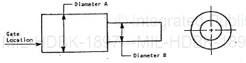 5.1.4.3 Concentricity. Limit is in relationship of diameters A and B. Gate location is a vital factor in maintaining concentricity (see figure 1).