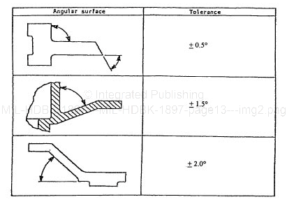 FIGURE 2. Tolerances for angular surfaces of as-cast investment castings.