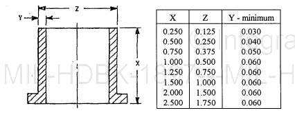 FIGURE 4. Minimum wall thickness in relation to cored cavity for investment castings.